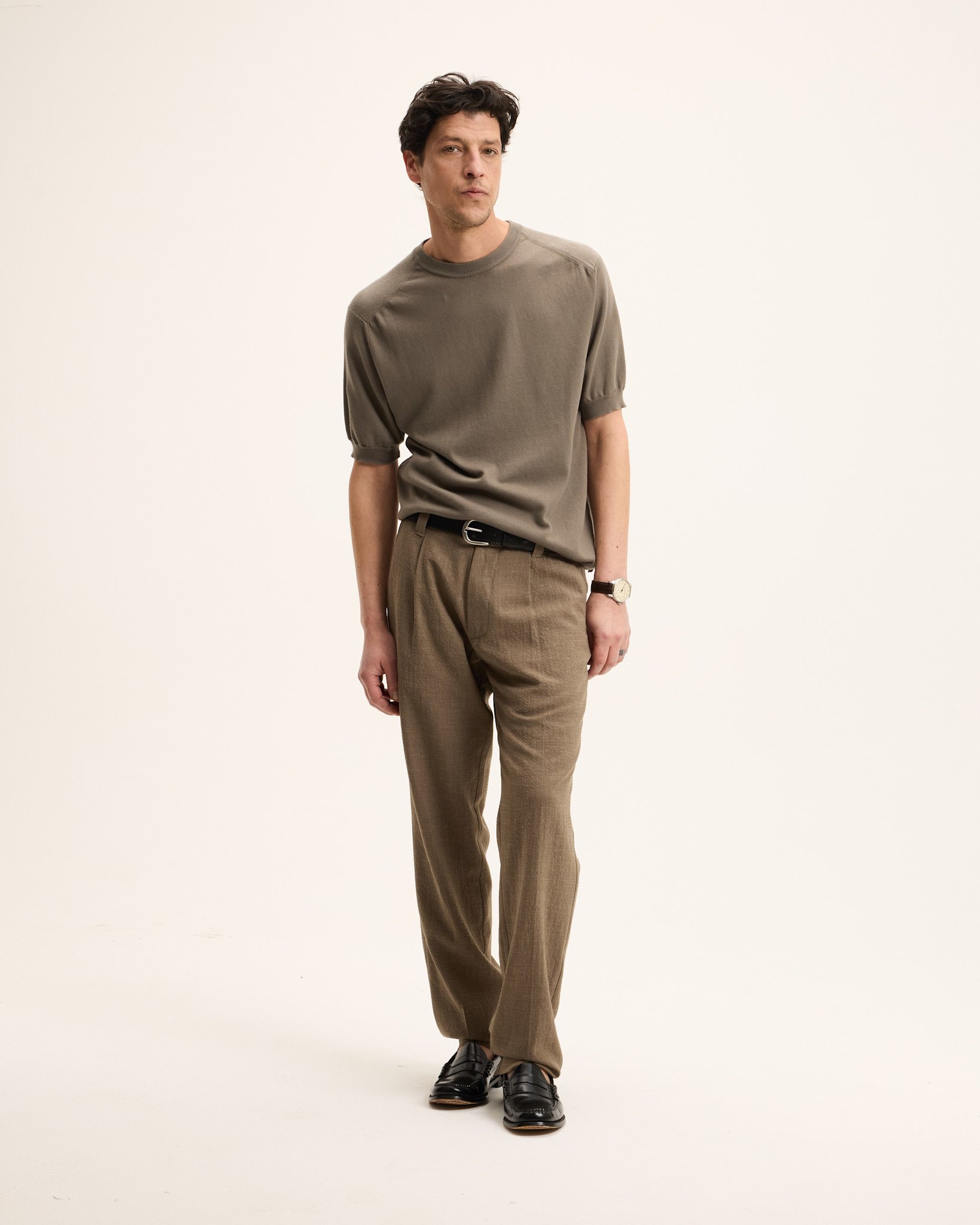- 25% wol & 20% linnen & 53% gerecycleerde polyester & 2% elastane