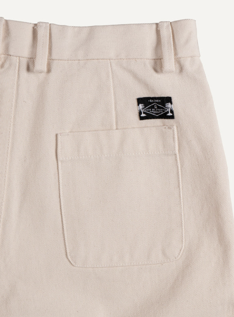 Ecru short met knopensluiting. Deze short heeft een standaard pasvorm en valt normaal. Je neemt best je gebruikelijke maat. 100% katoen. Gemaakt in Portugal.