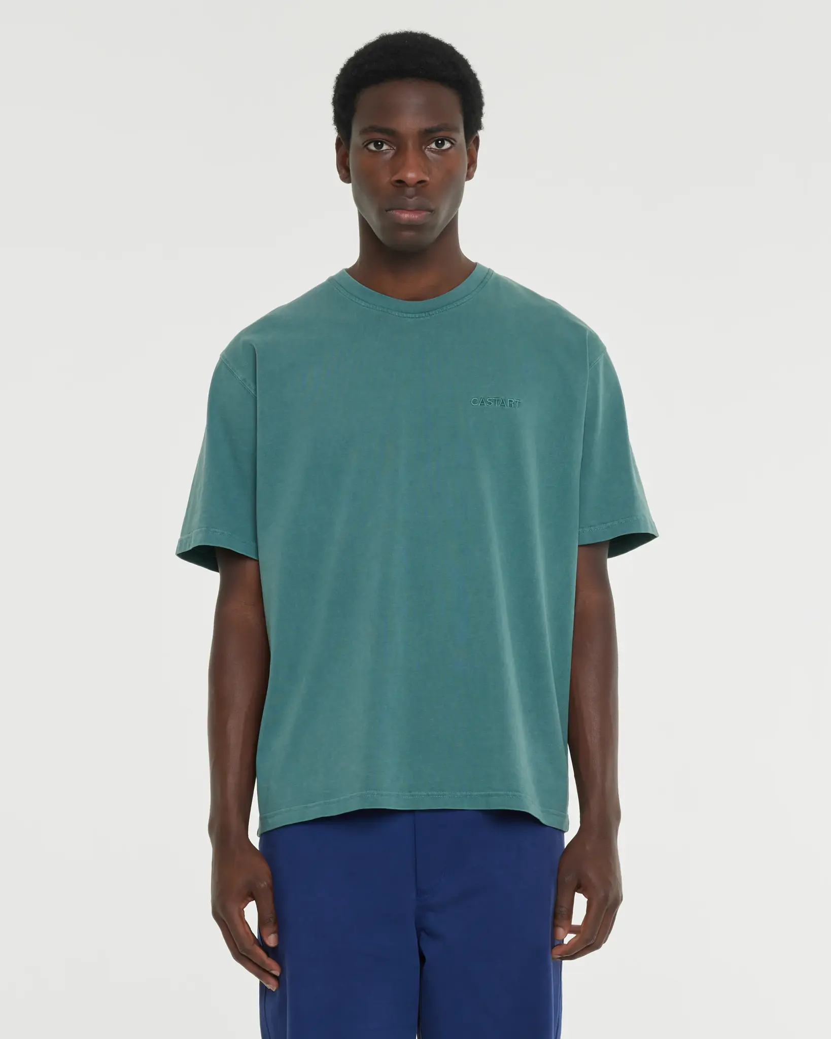 Stonewashed T-shirt met geborduurd logo. Door de oversized fit en stonewashing heeft het T-shirt een vintage look.