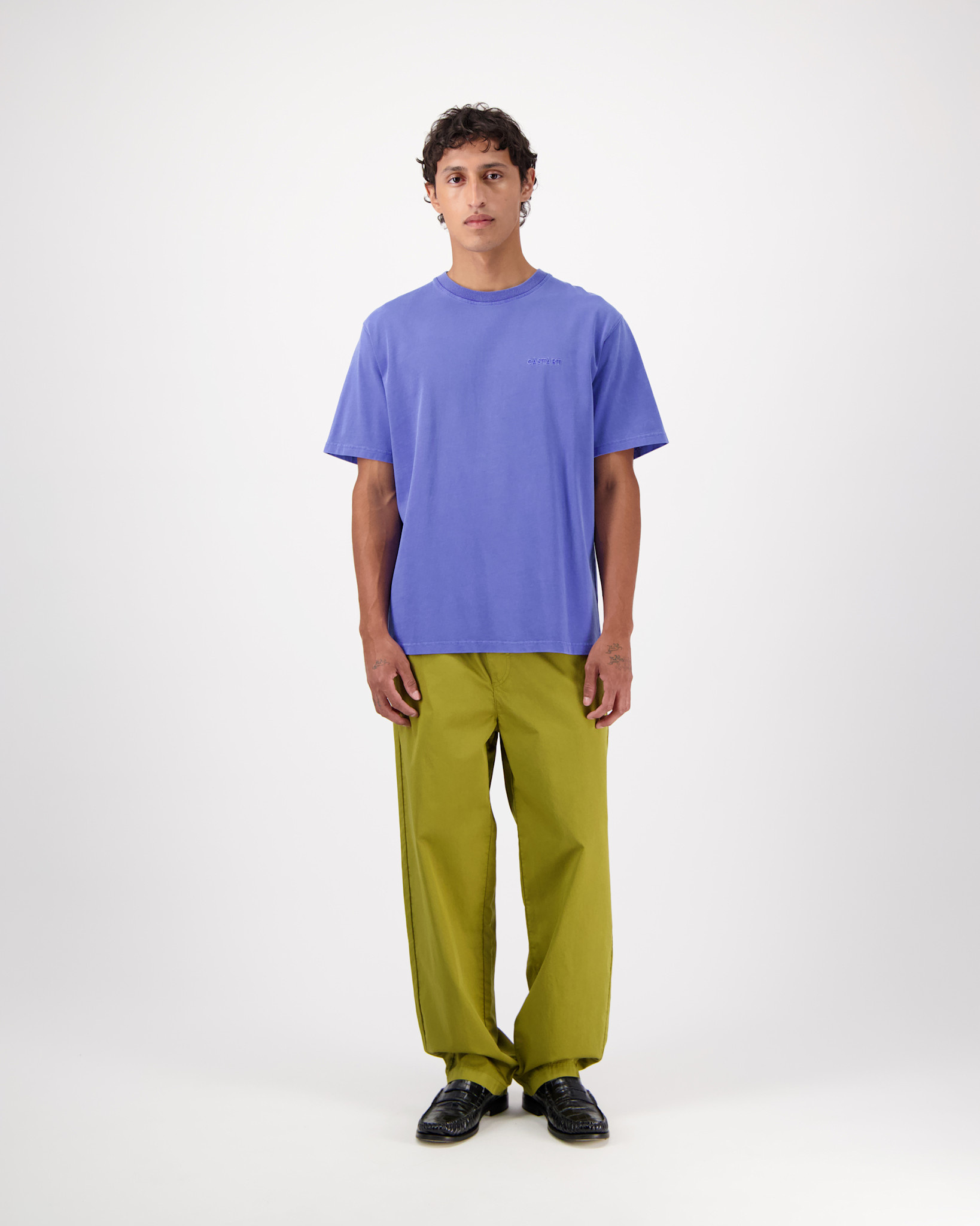 Elk kledingstuk is individueel geverfd en stonewashed, waardoor een zachte, doorleefde kleurvervaging ontstaat met unieke variaties die mooi blijven verouderen. Afgewerkt met een relaxte pasvorm en subtiel borstborduursel.